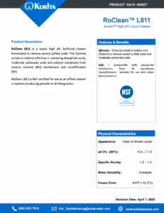 RoClean™ L811 liquid is a multicomponent, high pH buffered cleaner formulated to remove severe sulfate scale, phosphate scale, moderate carbonate scale, and calcium complexes. RoClean L811 is NSF approved.