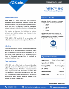 Vitec1500 is a liquid antiscalant designed to inhibit or reduce aluminum silicates, calcium phosphate, and silica scale. This highly concentrated antiscalant can be used at very low doses and is good for wastewater and well water with high silica. Product contains dispersants that can break up clays and particulates. Vitec 1500 is NSF approved.