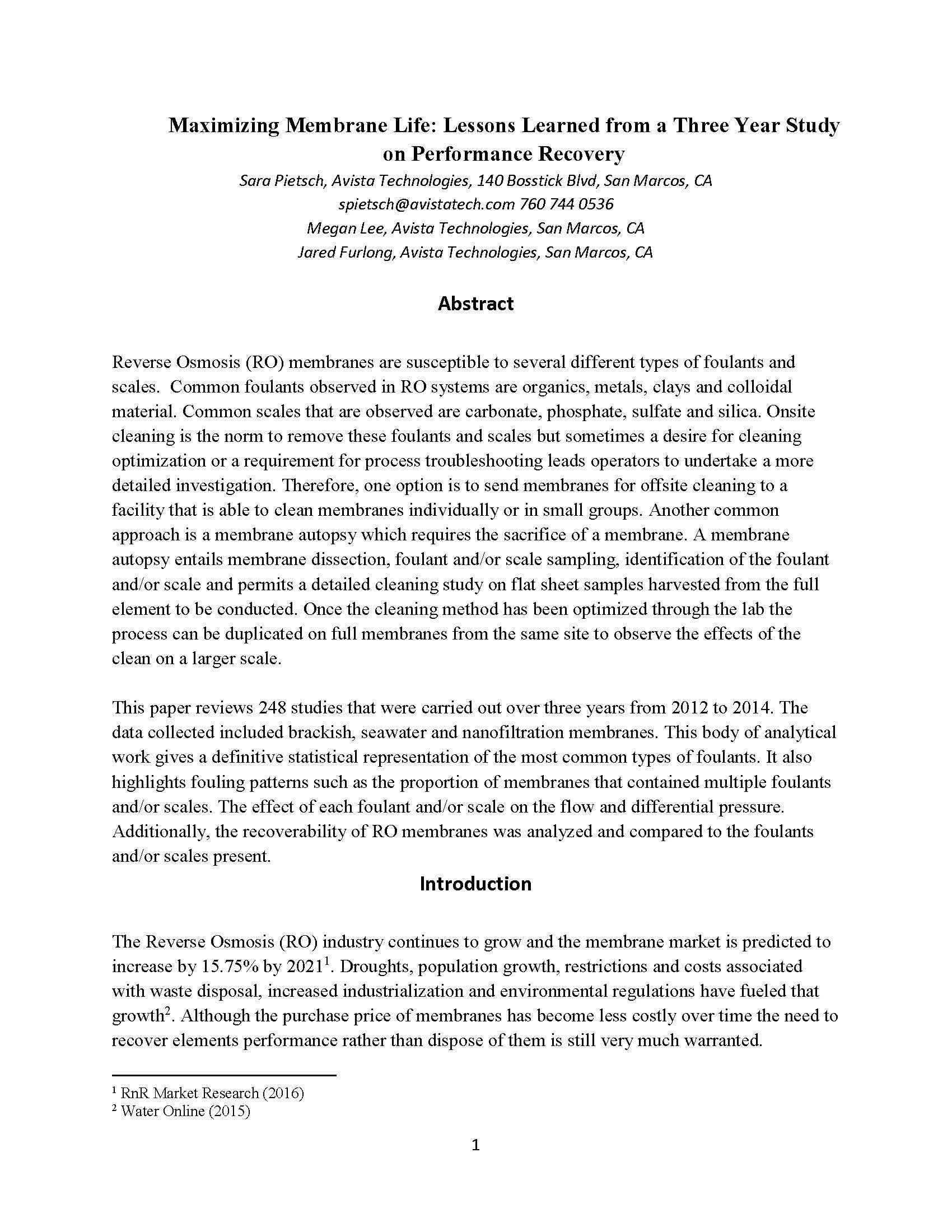 This confirms that membranes can be cleaned and transported for detailed pre- and post-cleaning analysis and successfully exceed the average membrane life of 3 to 5 years.